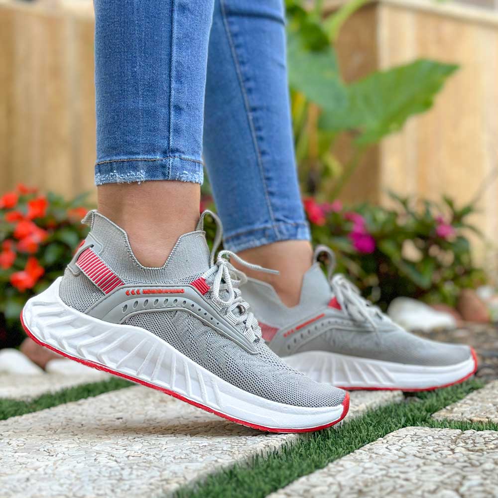 کتانی دخترانه جورابی طوسی کد 22148