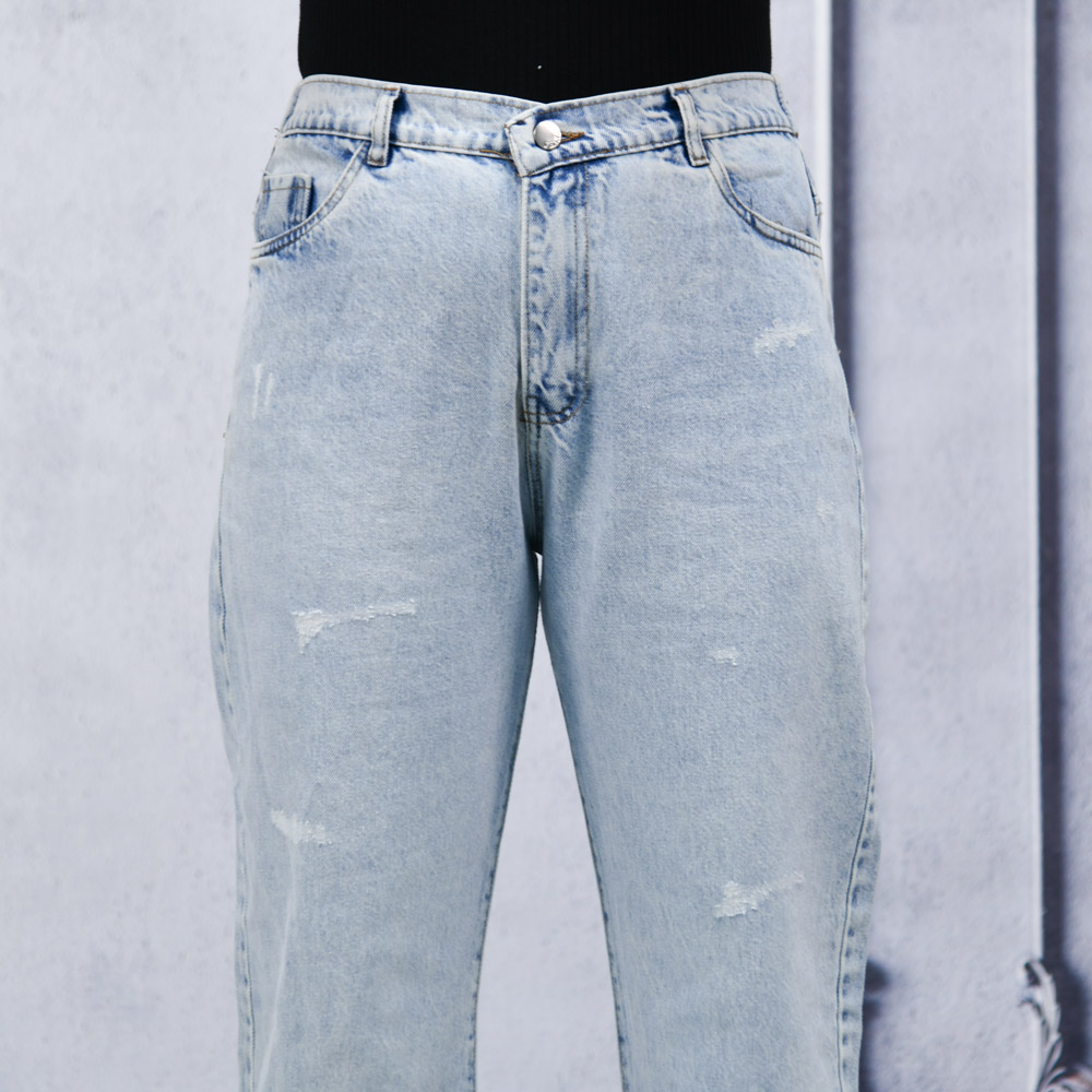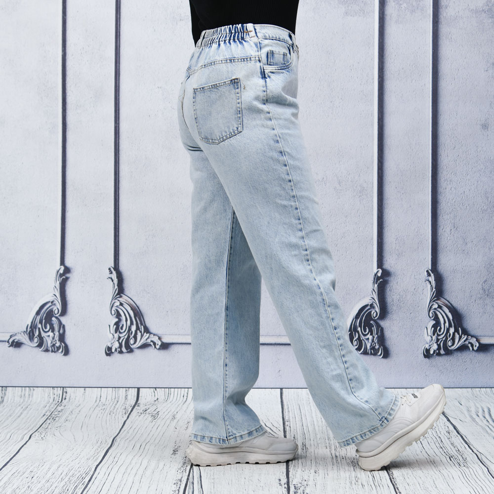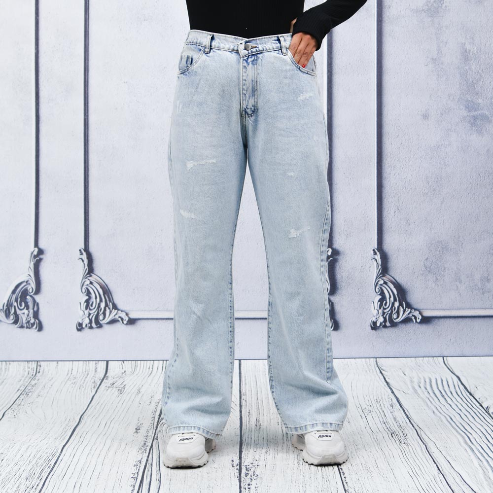 شلوار جین دخترانه نیم بگ آبی یخی کد 23500