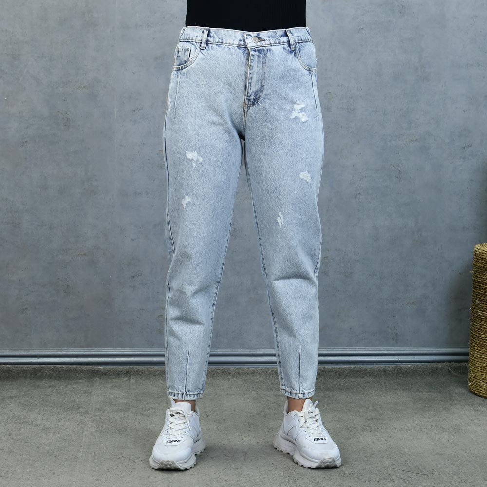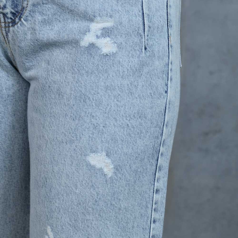 شلوار جین دخترانه مام آبی یخی کد 23516