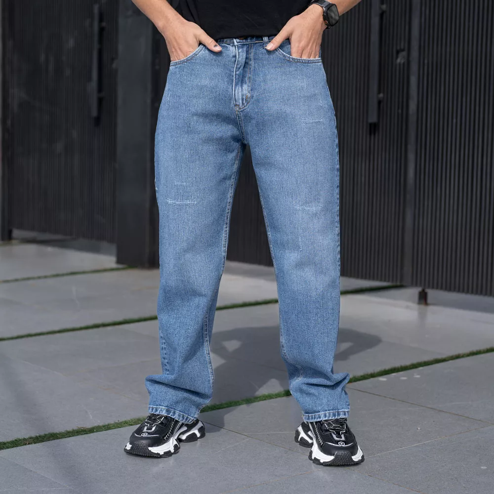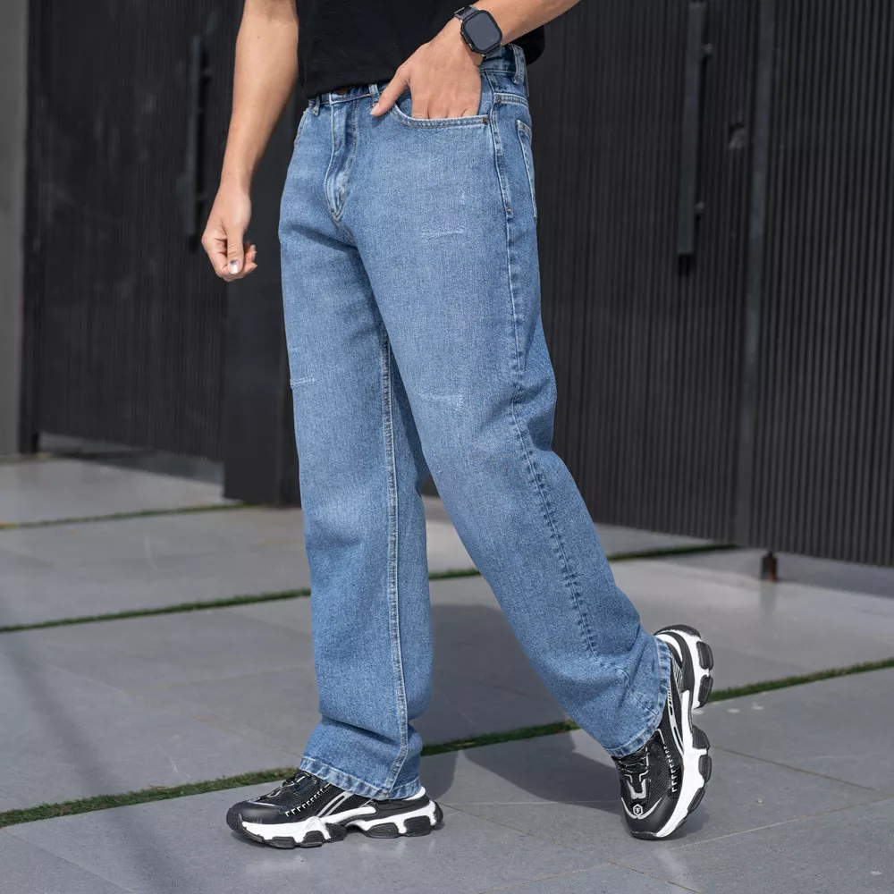 شلوار جین بگ مردانه آبی کد 25170