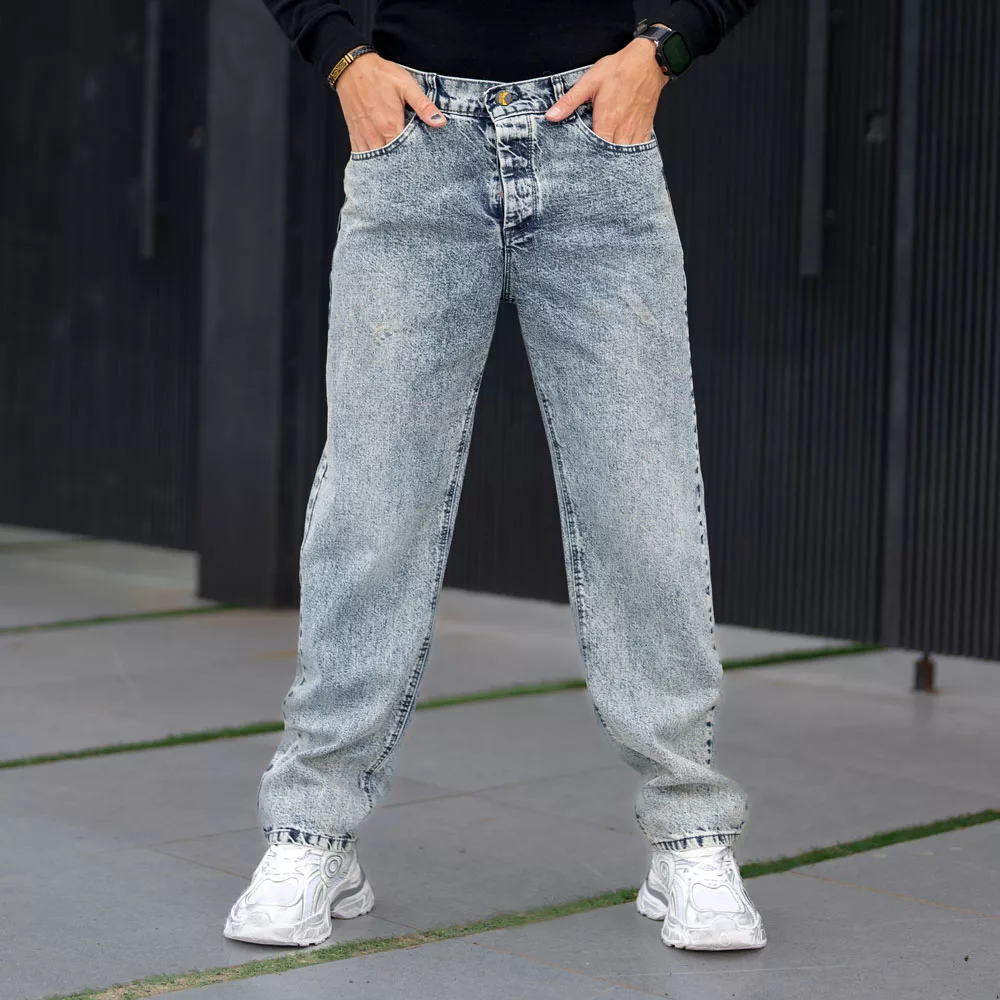 شلوار جین مردانه نیم بگ آبی کد 25867