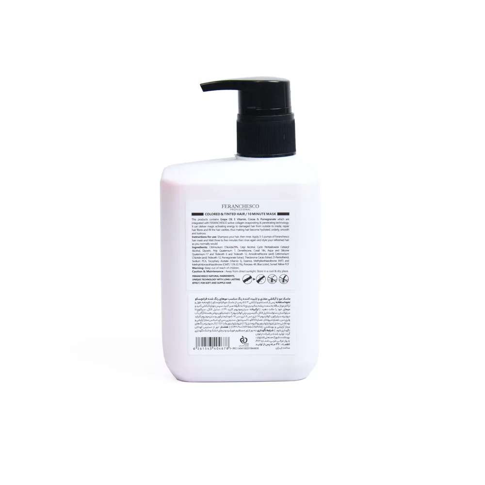 ماسک مو با آبکشی (داخل حمام) مغذی و تثبیت کننده رنگ ، با فرمولاسیون خاص برای موهای رنگ شده طراحی شده است . این ماسک حاوی ویتامین E ، عصاره کاکائو ، عصاره انار و روغن هسته انگور می باشد که خاصیت آبرسانی و تغذیه و تثبیت کنندگی رنگ موها را به این محصول داده است . آنتی اکسیدانهای عصاره انار موجود در این محصول در برابر اشعه UV خورشید از موها محافظت کرده و همچنین مانع خشکی ، موخوره و تغییر رنگ مو می شود .