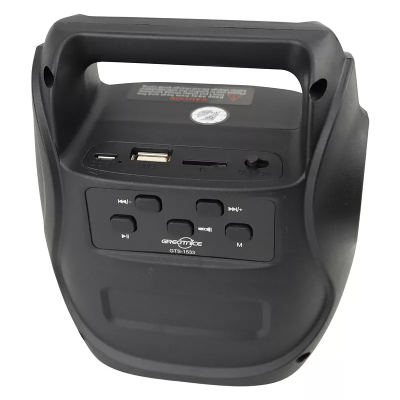 اسپیکر GTS-1533 به یک باتری داخلی قابل شارژ مجهز است که شارژدهی مناسبی را برای ساعتها پخش مداوم موسیقی فراهم میکند. این ویژگی به شما اجازه میدهد که بدون نگرانی از تمام شدن شارژ، از موسیقی مورد علاقهتان در فضای باز یا مهمانیها لذت ببرید.