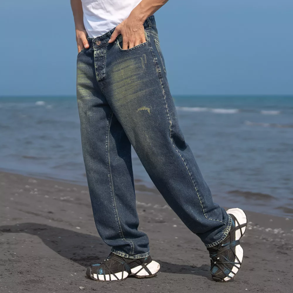 شلوار جین مردانه نیم بگ آبی تیره کد 26856