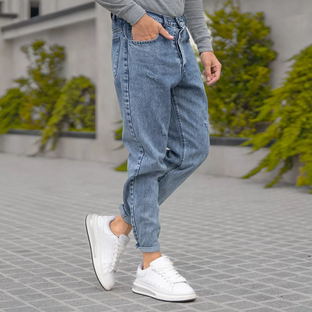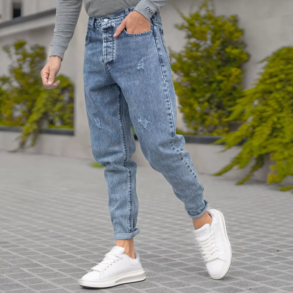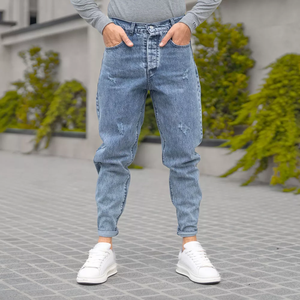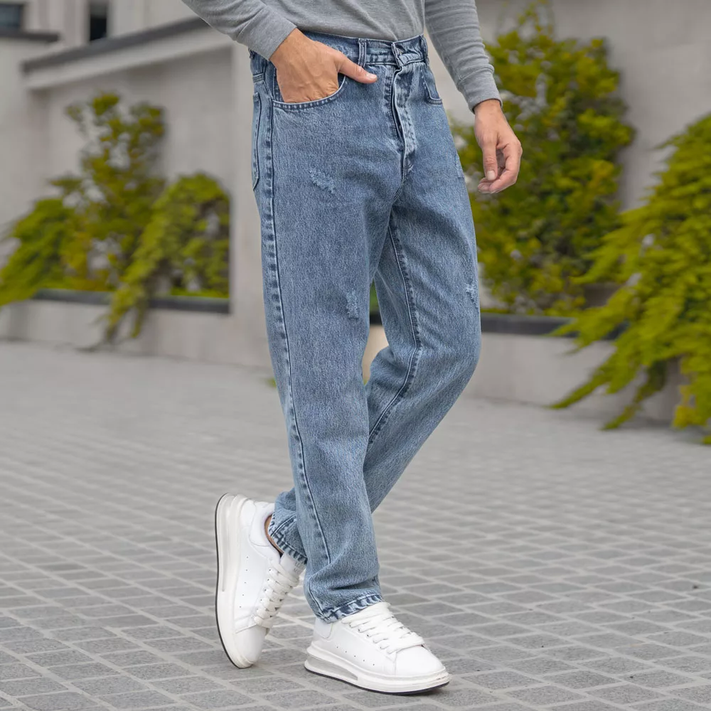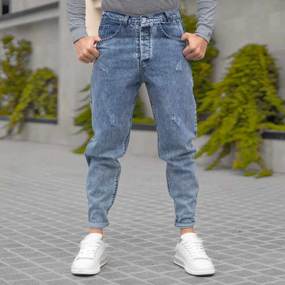 شلوار جین مردانه مام آبی کد 27598