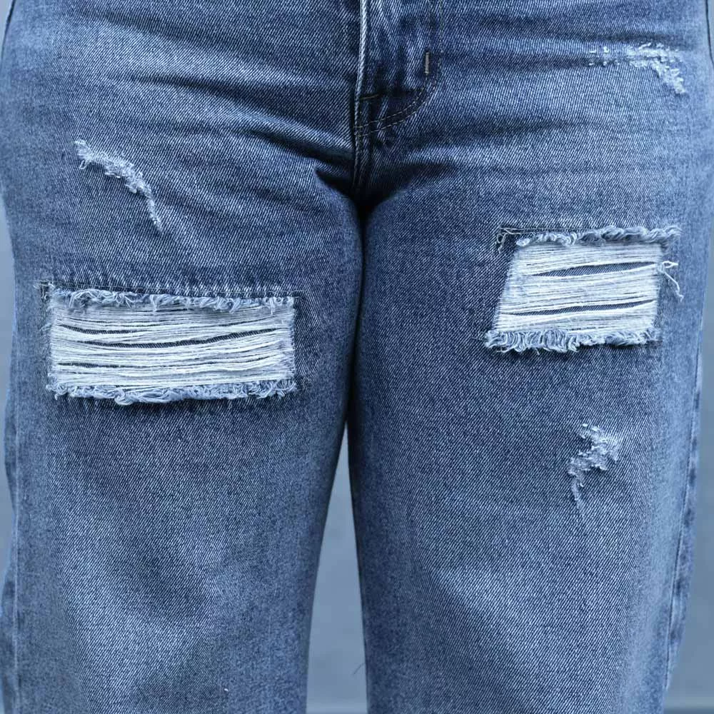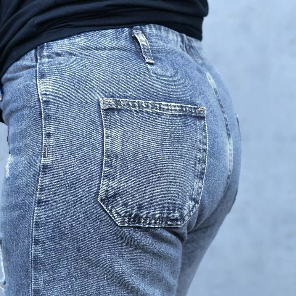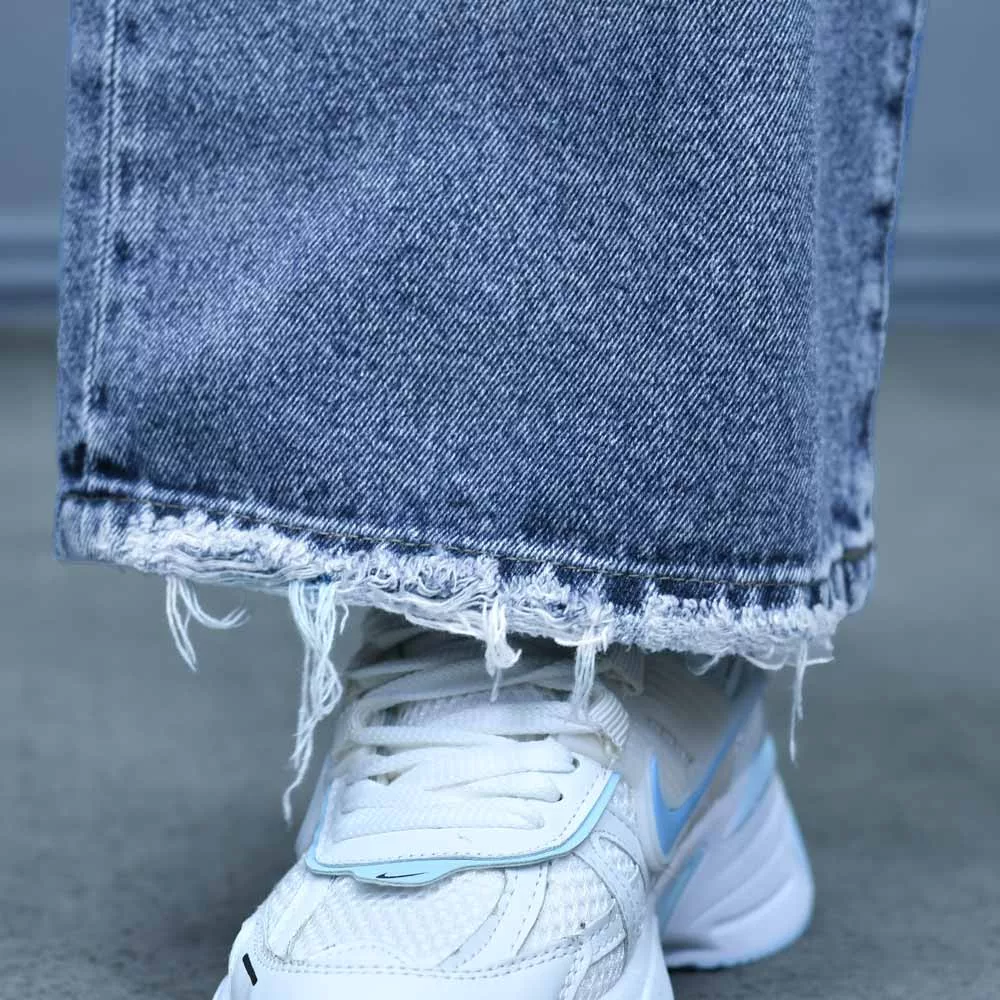 شلوار جین دخترانه نیم بگ آبی کد 27721
