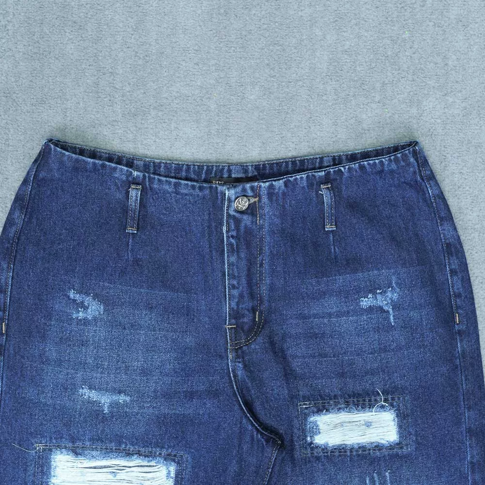 شلوار جین دخترانه نیم بگ آبی تیره کد 27723