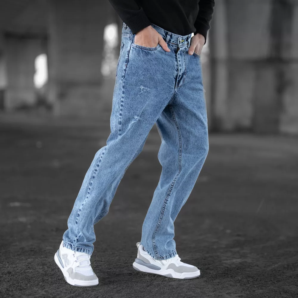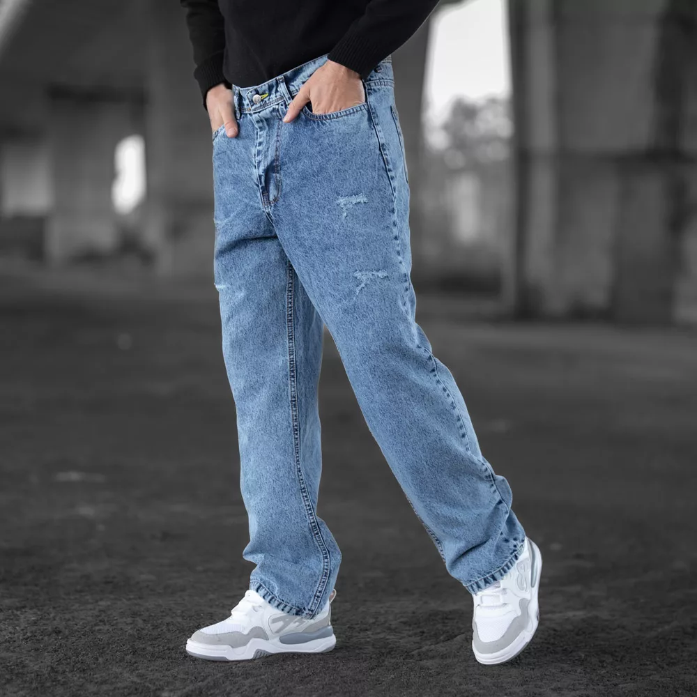 شلوار جین مردانه نیم بگ آبی کد 28391