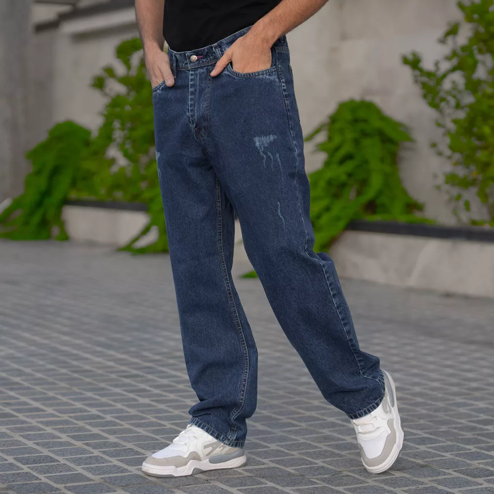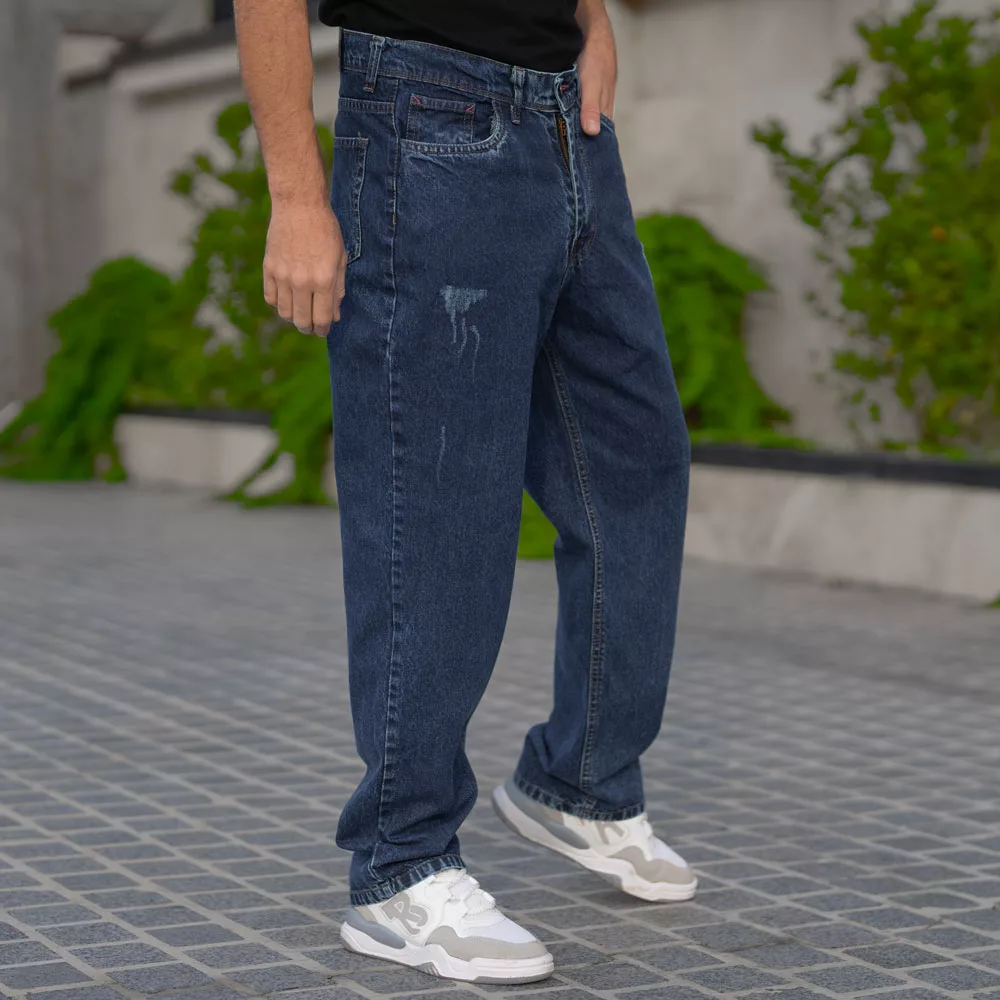 شلوار جین مردانه نیم بگ آبی تیره کد 28559