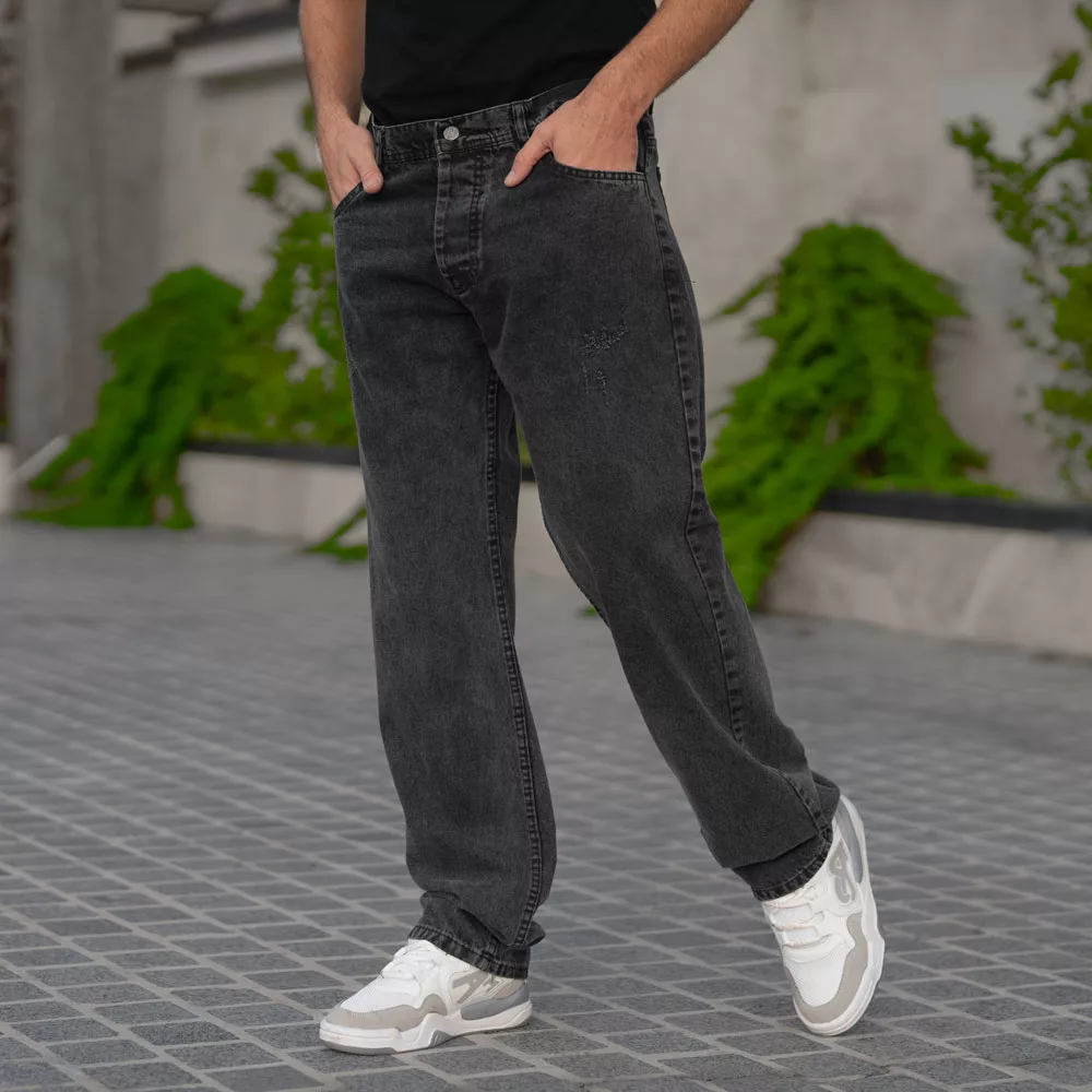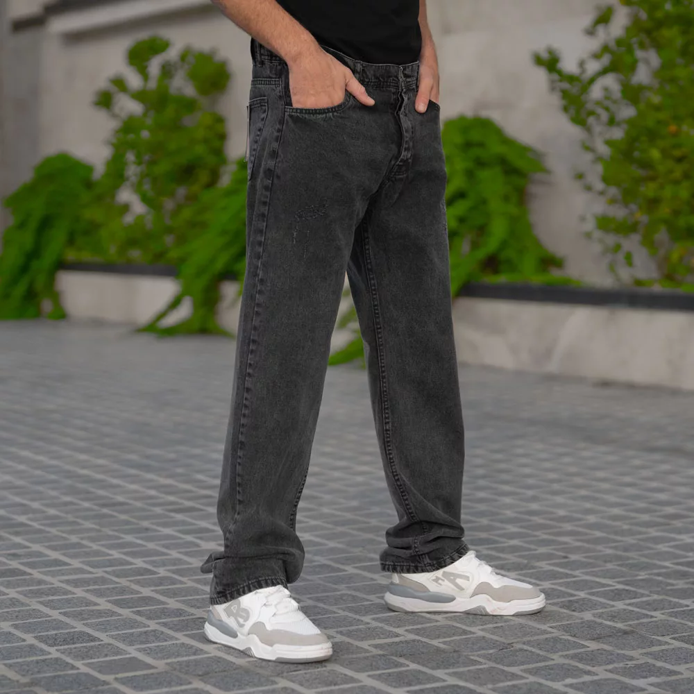 شلوار جین مردانه نیم بگ ذغالی کد 28560