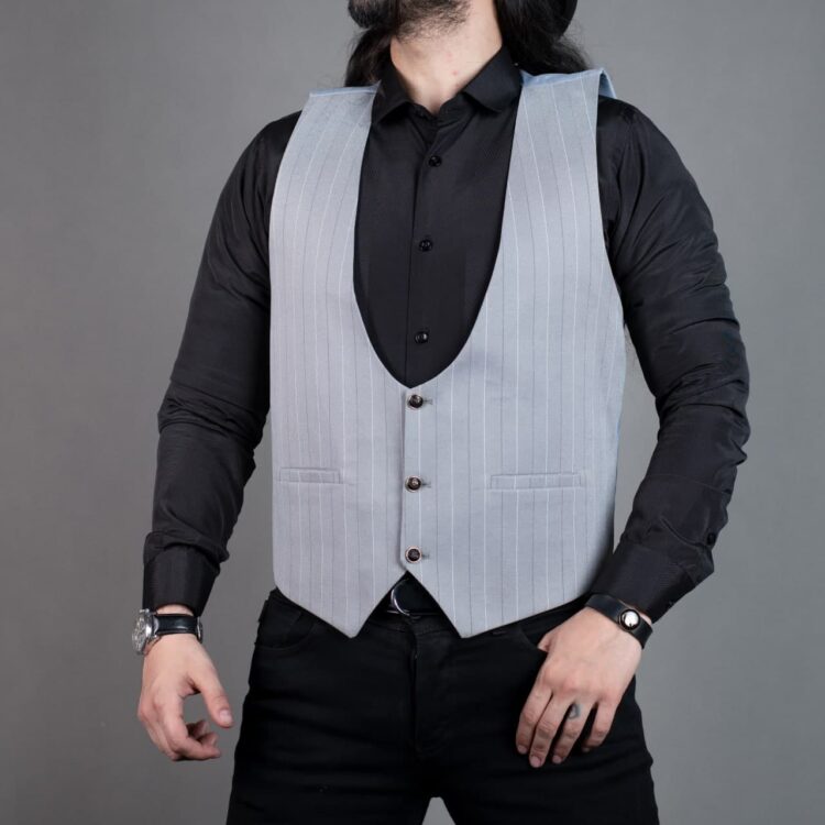 Gray striped men's vest code 5606 دسته بندی: مردانه