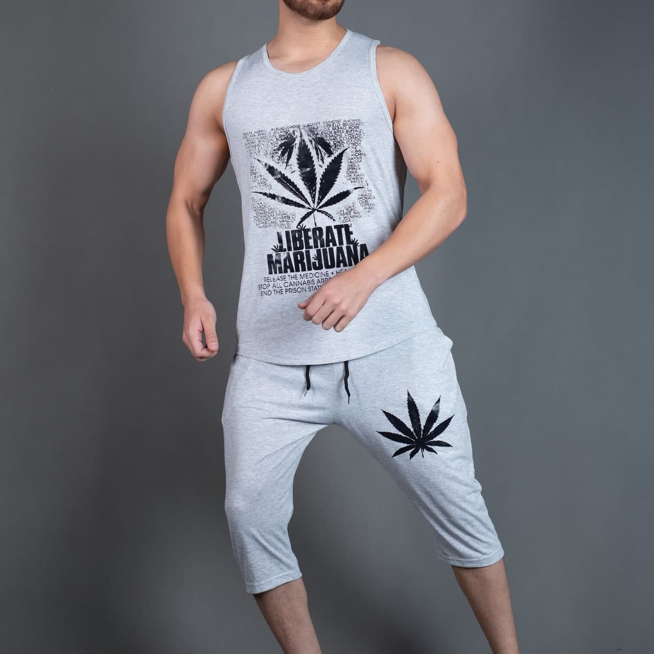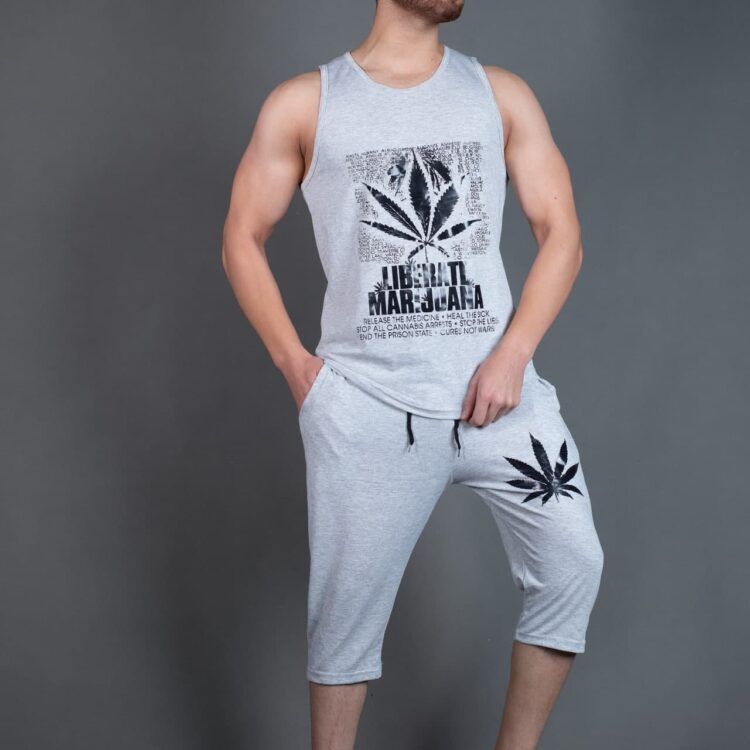 ست تاپ و شلوارک طرح برگ طوسی