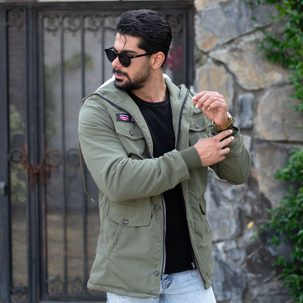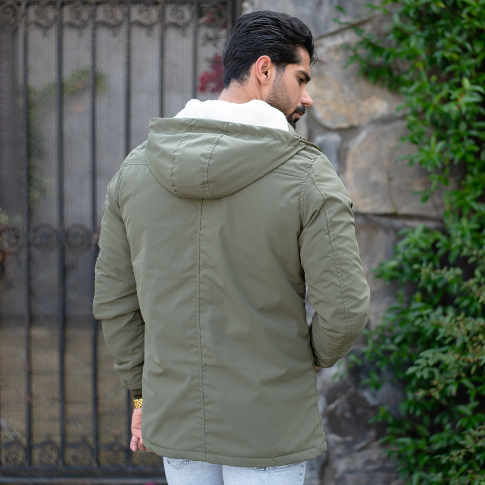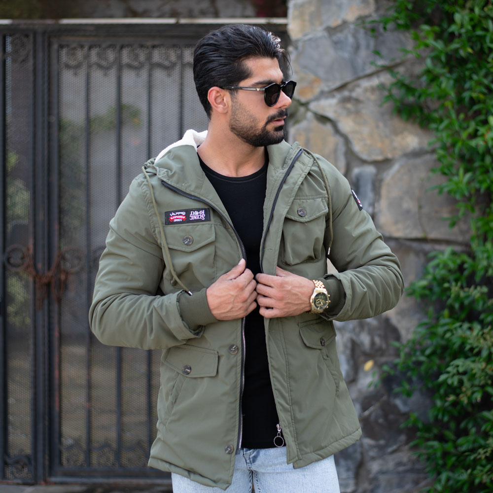 Olive hooded jacket for men, code 17847 دسته بندی: مردانه